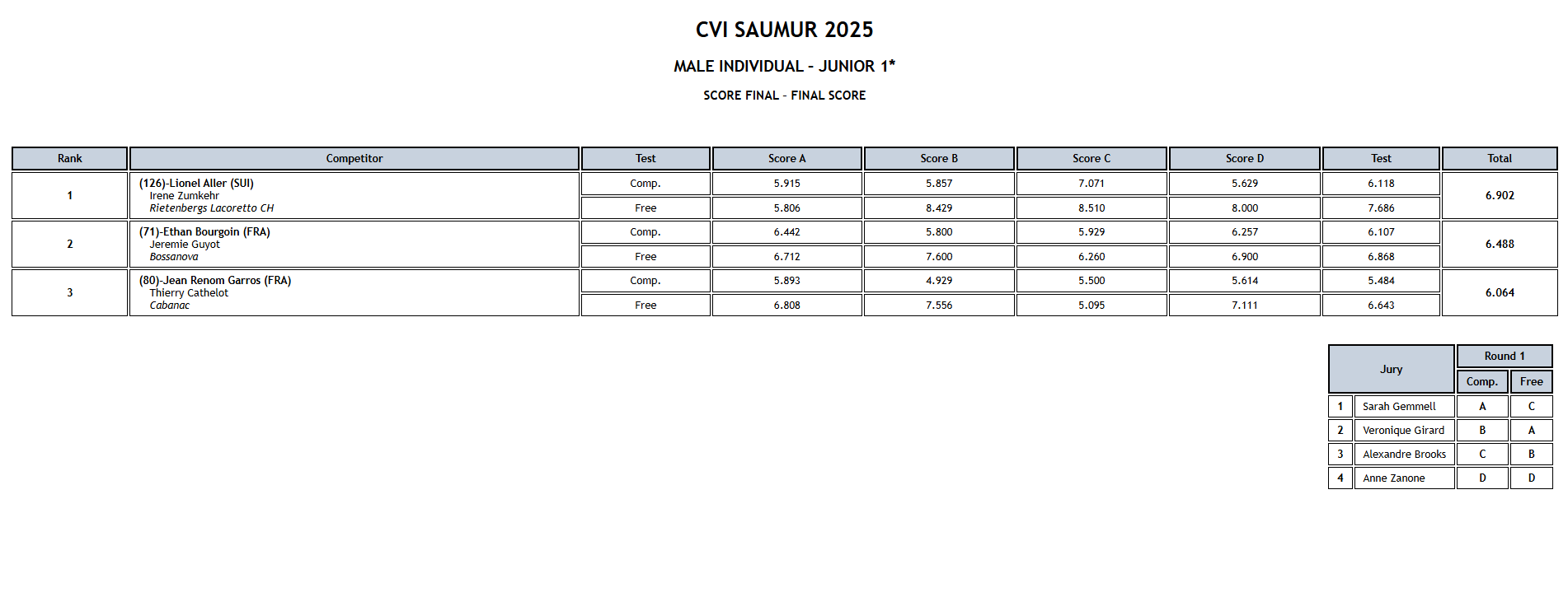 | ORT | TEAM | KATEGORIE | NOTE | RANG |